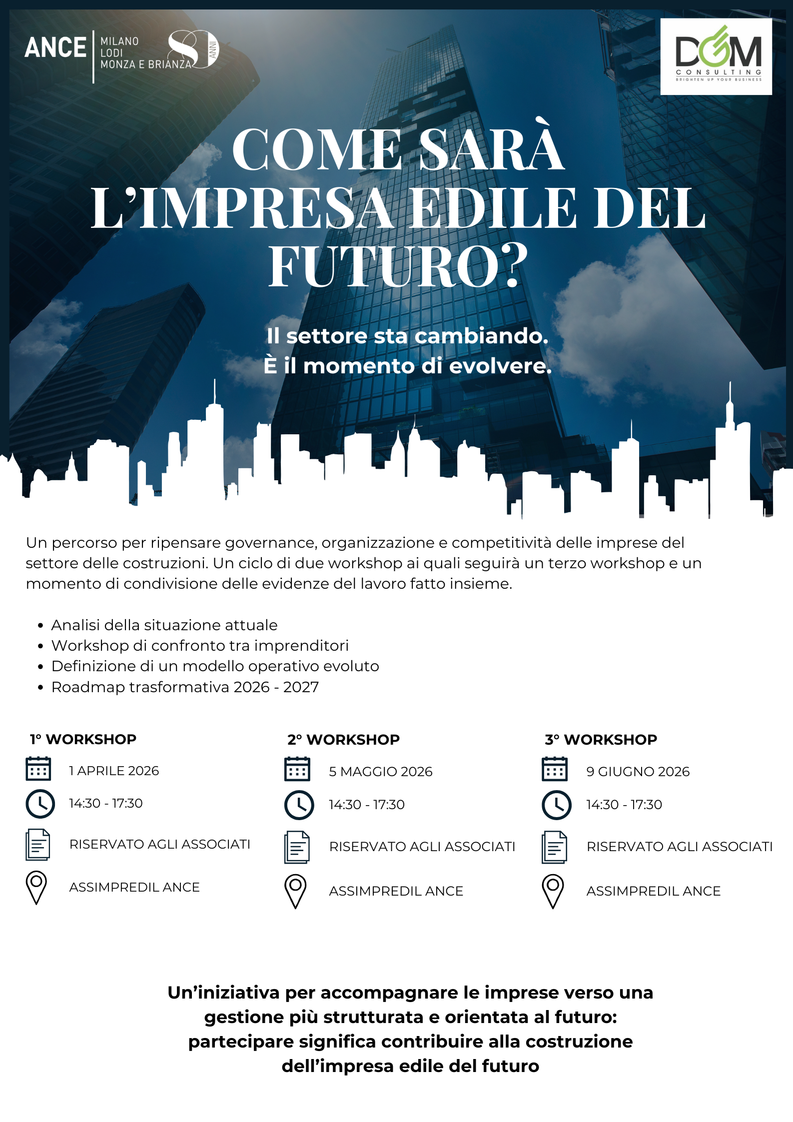 2° workshop del percorso “L’impresa edile del futuro” in programma martedì 5 maggio 2026 alle ore 14.30.