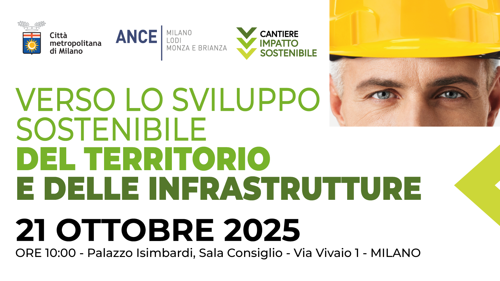 07/10/2025Informiamo i soci che, Città metropolitana di Milano e Assimpredil Ance hanno organizzato un evento per promuovere la sostenibilità del territorio e diffondere come buona pratica il codice di condotta volontario “Cantiere Impatto Sostenibile” ideato e promosso da Assimpredil Ance. “Cantie... »