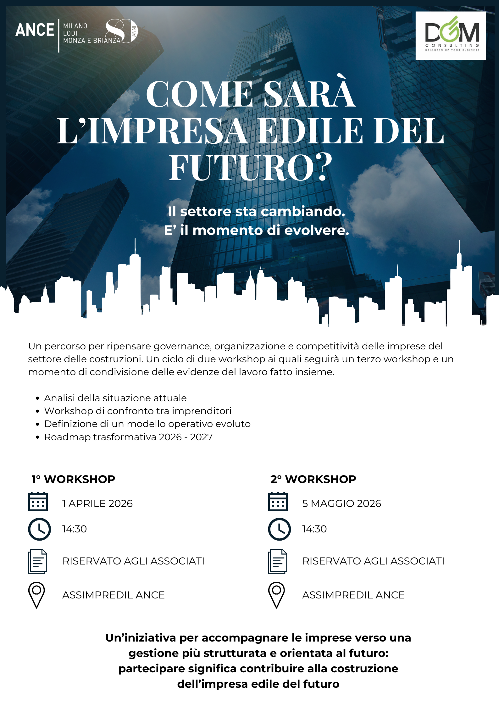 2° workshop del percorso “L’impresa edile del futuro” in programma martedì 5 maggio 2026 alle ore 14.30.